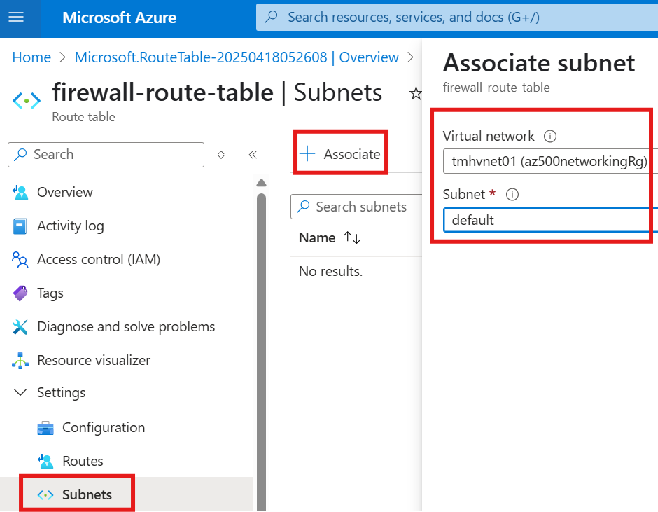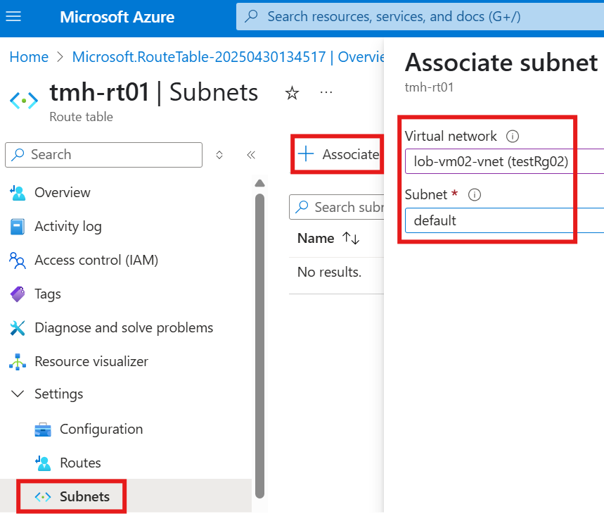 Now, in the subnets blade of the route table resource, associate the subnet for which the routes will be applicable.