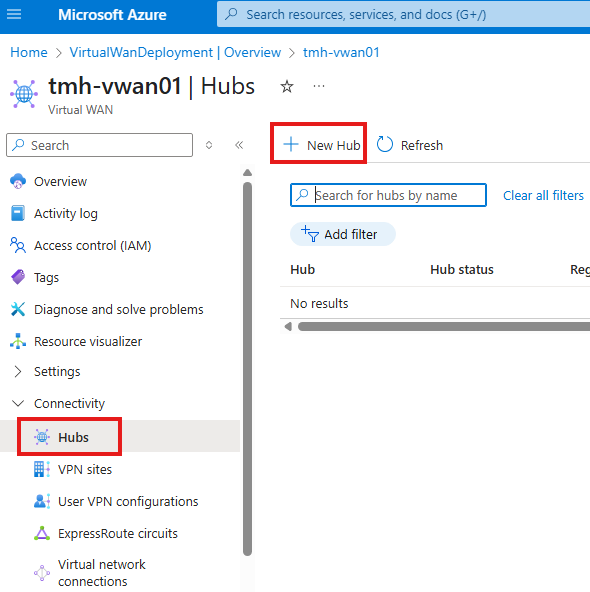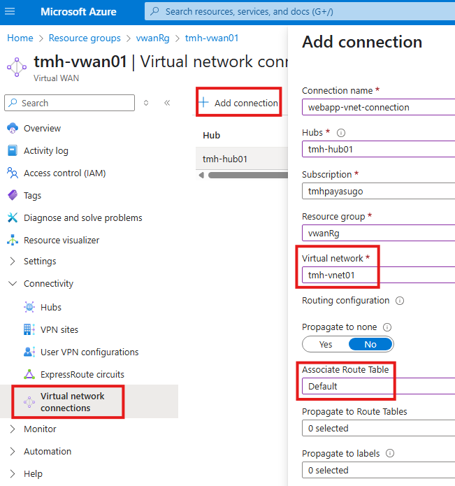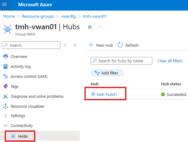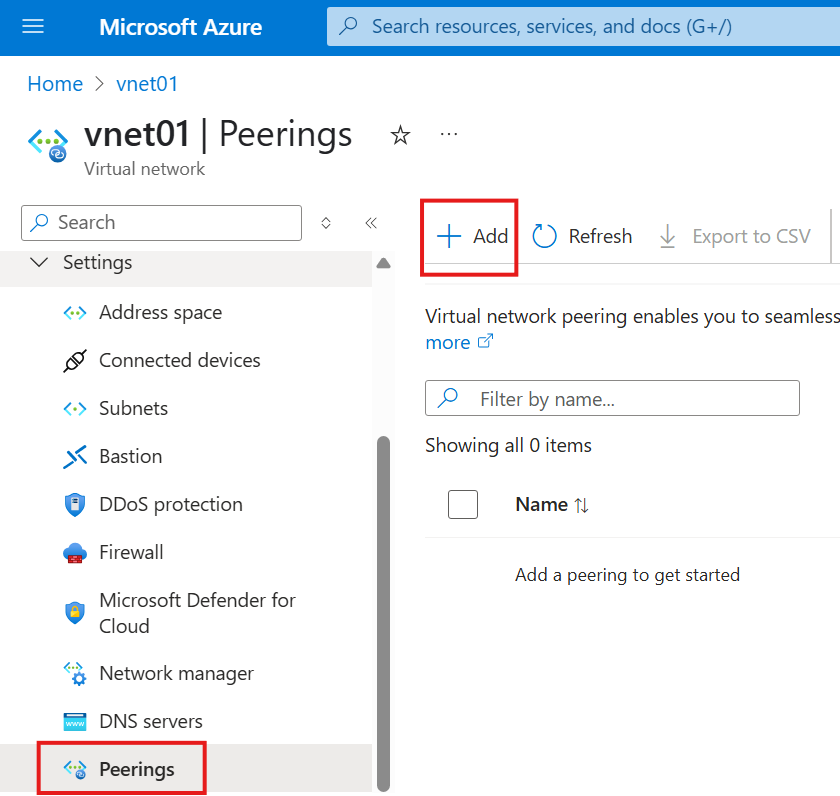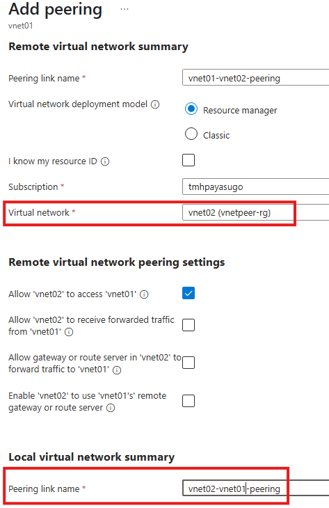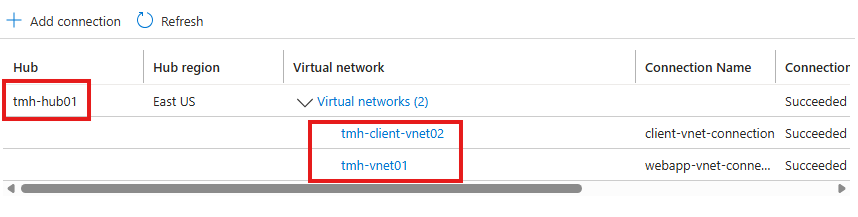 Create a peering between hub virtual network and spoke virtual network