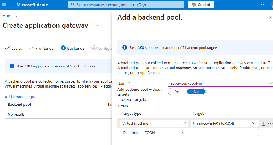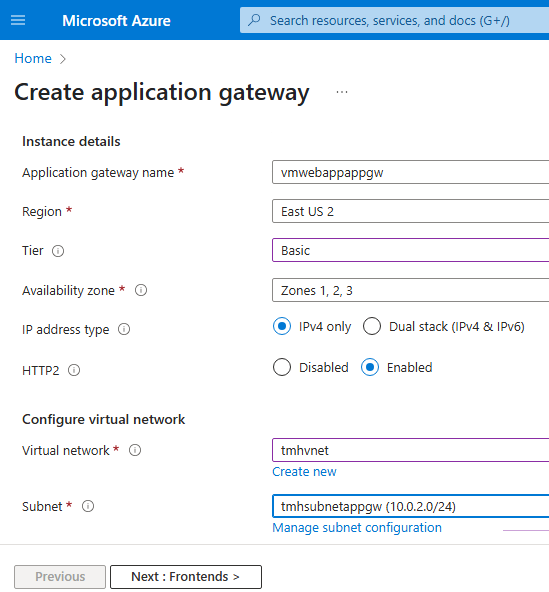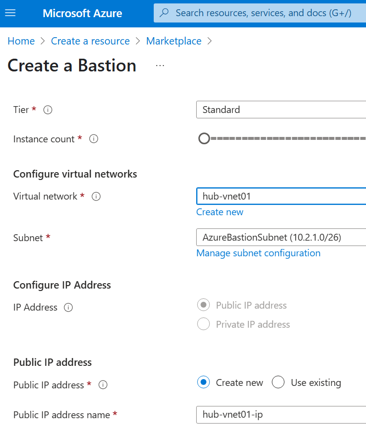 While creating bastion resource, we need to select the virtual network with bastion subnet, we created earlier.