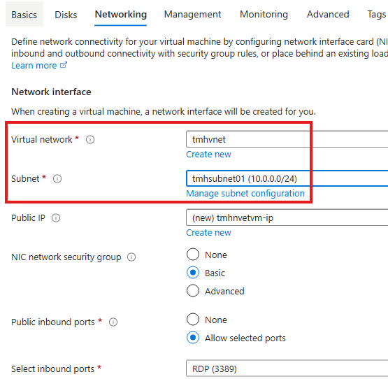 While creating VM in Azure, select the VNet and Subnet that we created earlier.