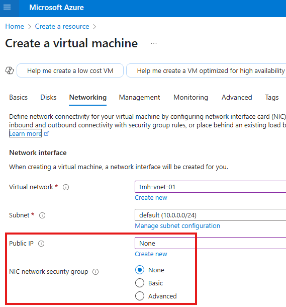 1 – Create a private VM, on a separate virtual network(spoke)