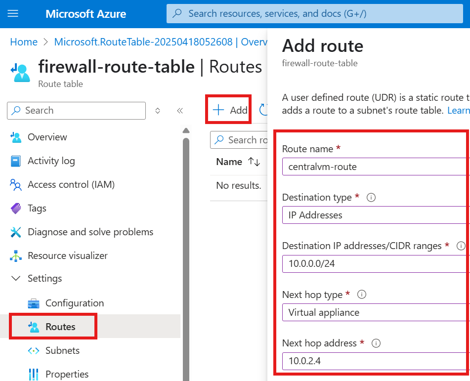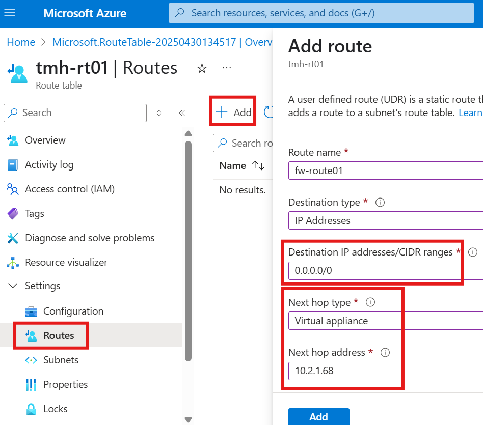 - Update routing so any traffic from on-premise destined for internal apps goes through the firewall’s private IP.