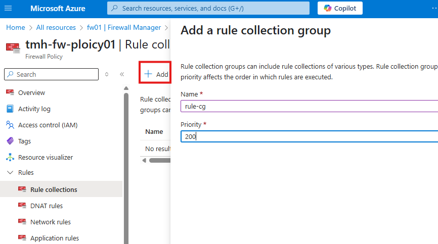 Here we add a rule collection group.