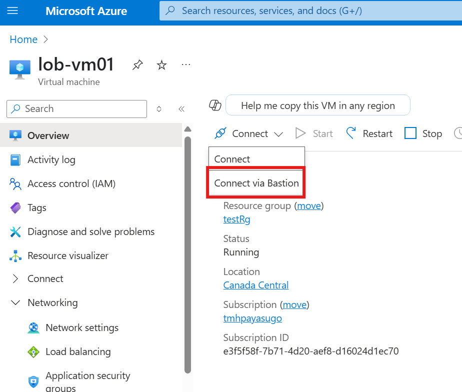 Connect VM using Bastion