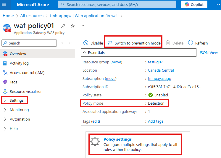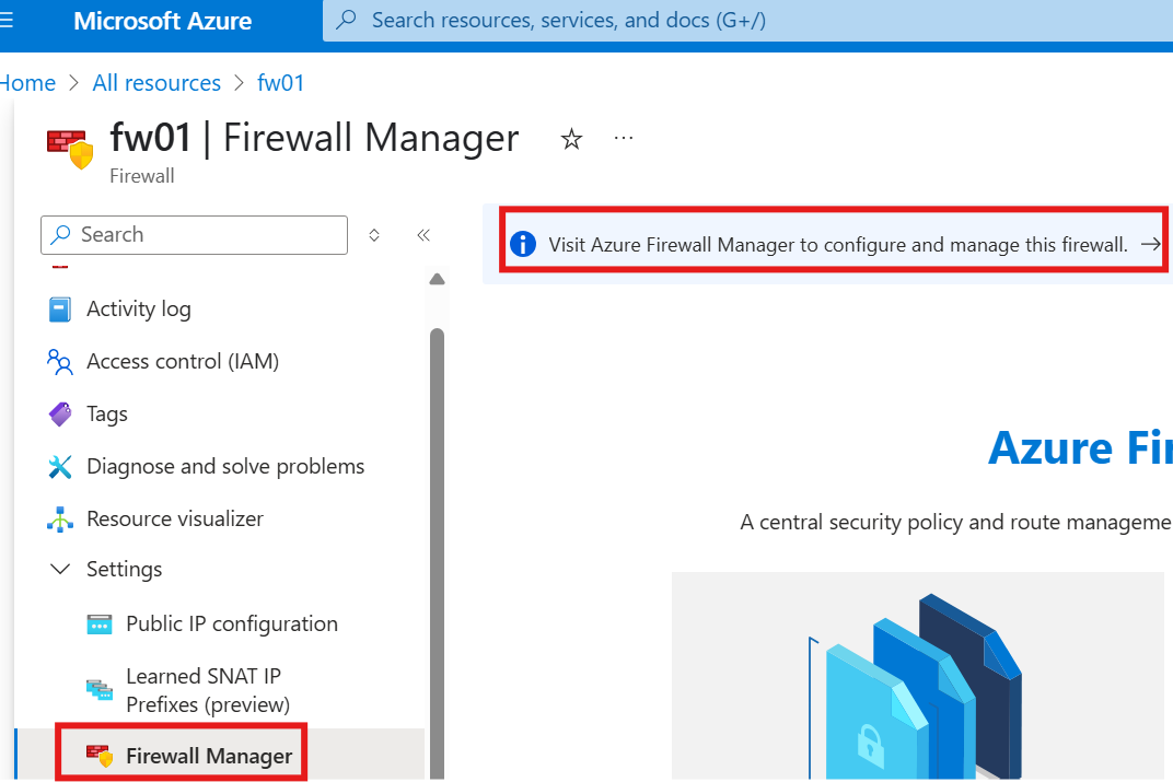 From firewall resource, go to Firewall Manager blade (settings)