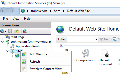 Remove default website and Add new website.