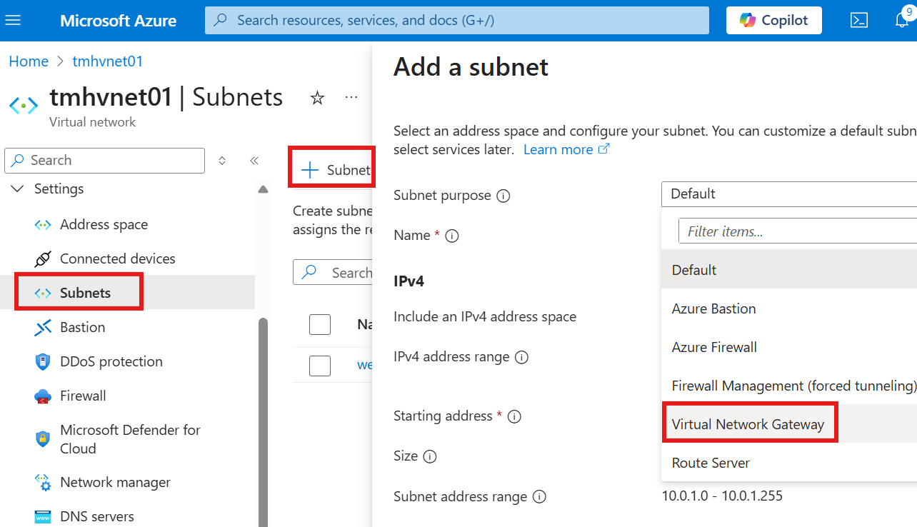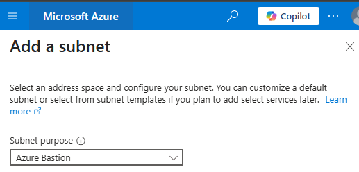 Select subnet purpose as Azure Bastion