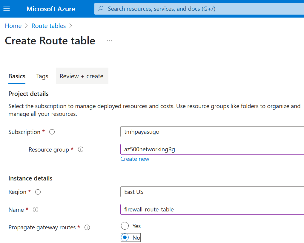 No any outbound traffic to internet from spoke network, should go through firewall in hub network. To accomplish this we need to create a route table resource.