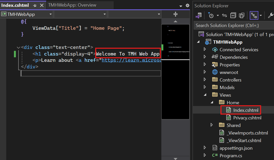 Make some noticeable change in UI of the index page at Home > Index.cshtml