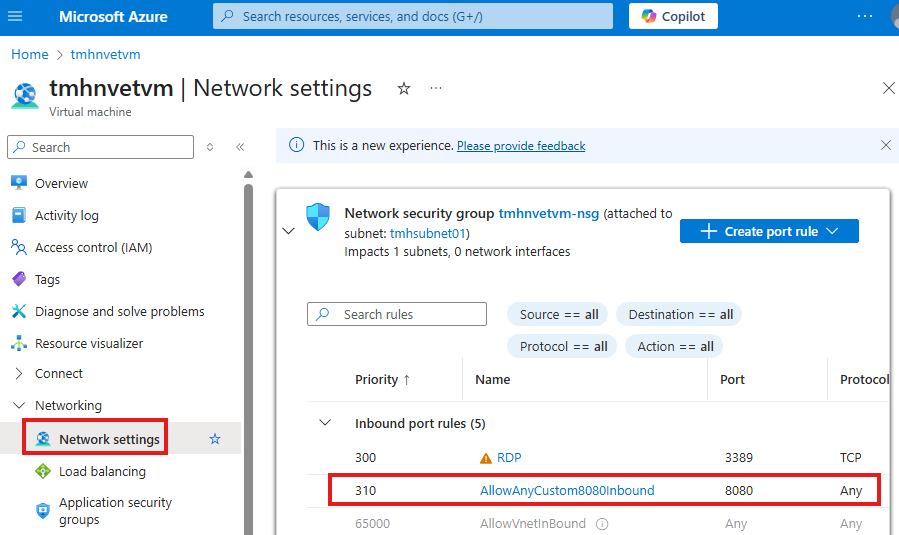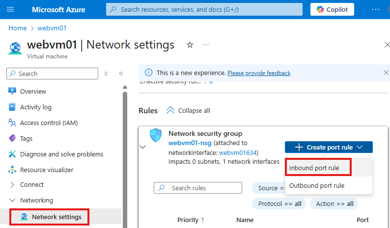 Enabling Web Access with NSG Rules