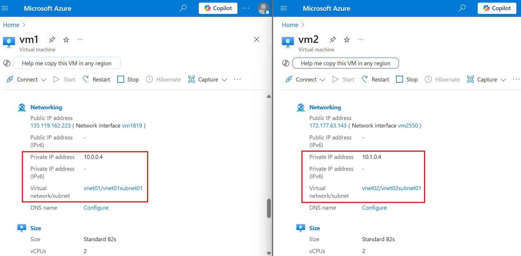 Public IP is used to connect to VM globally. Private IP is visible only with in the VNet(not necessarly same subnet, subnets will not have overlapping IP, so private IP is unique in a VNet).