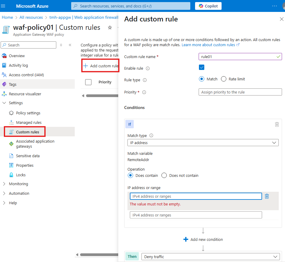 You control traffic with rules, grouped into rule collection groups. Azure Firewall processes rules in this order: