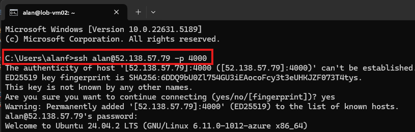 Once rule is added, we can send a SSH request to port 4000 of firewall’s public IP address.
