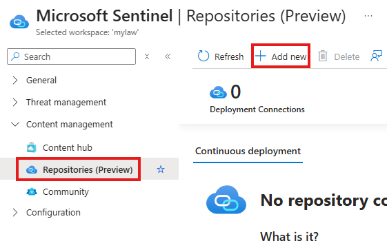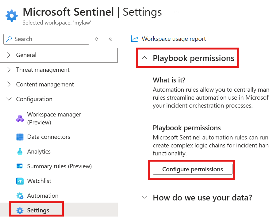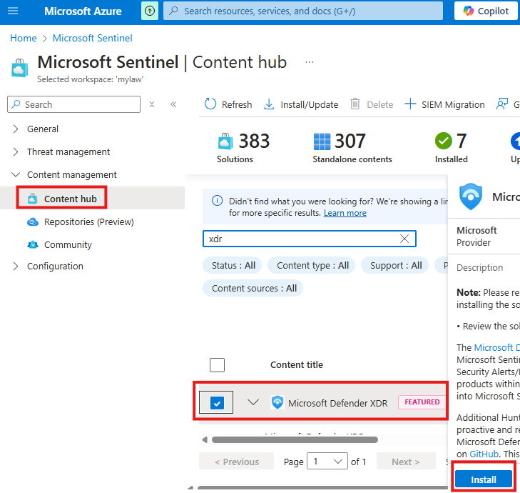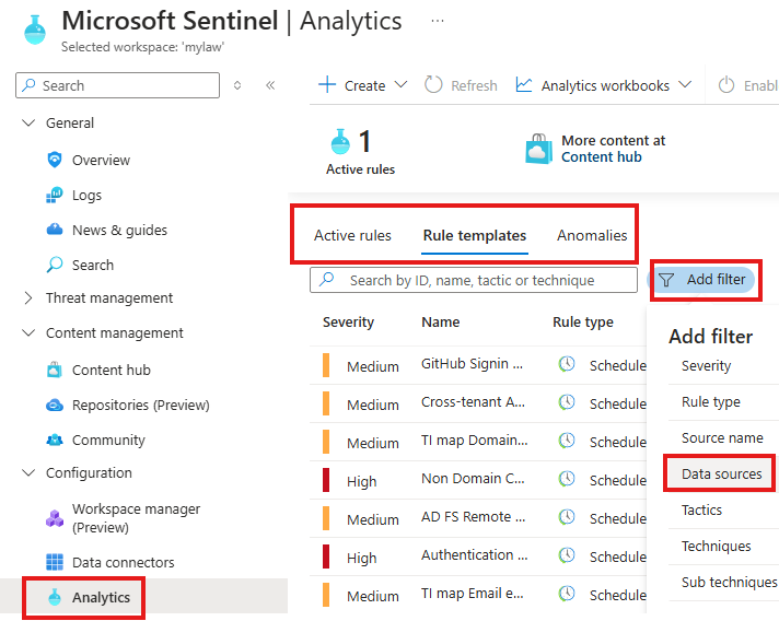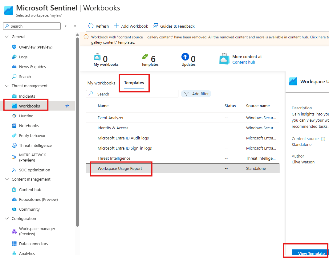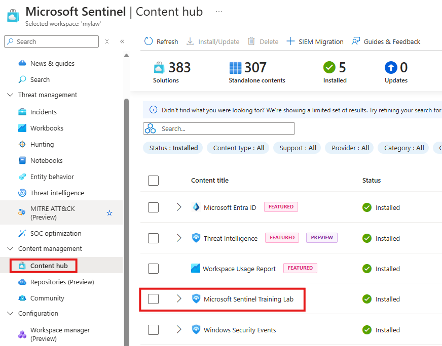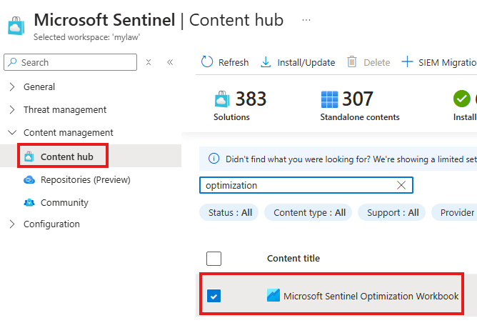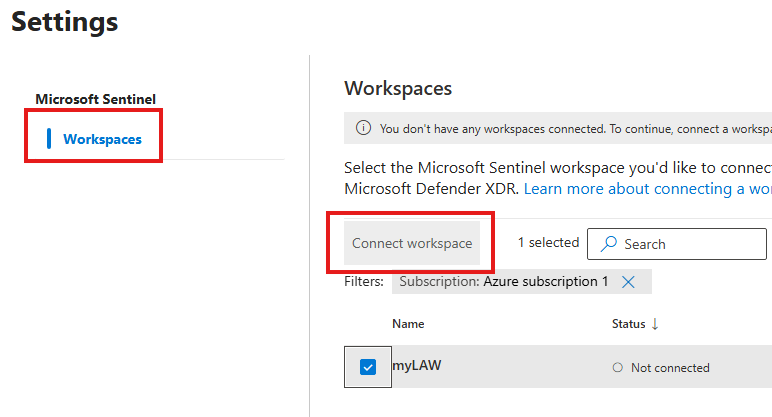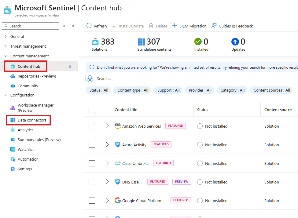 Link Sentinel to the LAW you’ve created. - Connect Data Sources via Content Hub