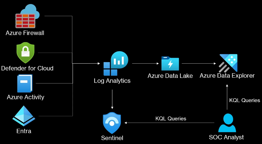 Sentinel sits on top of Log Analytics Workspace (LAW) and analyzes the data sent to it. It also works closely with Azure Monitor, which logs all resource activity.
