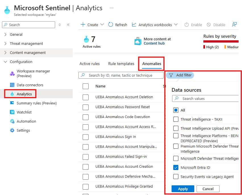 This is the foundation for Sentinel. Logs from different sources are sent here for analysis. Each tenant needs its own LAW, and some organizations may restrict cross-region data flow. - Deploy Microsoft Sentinel
