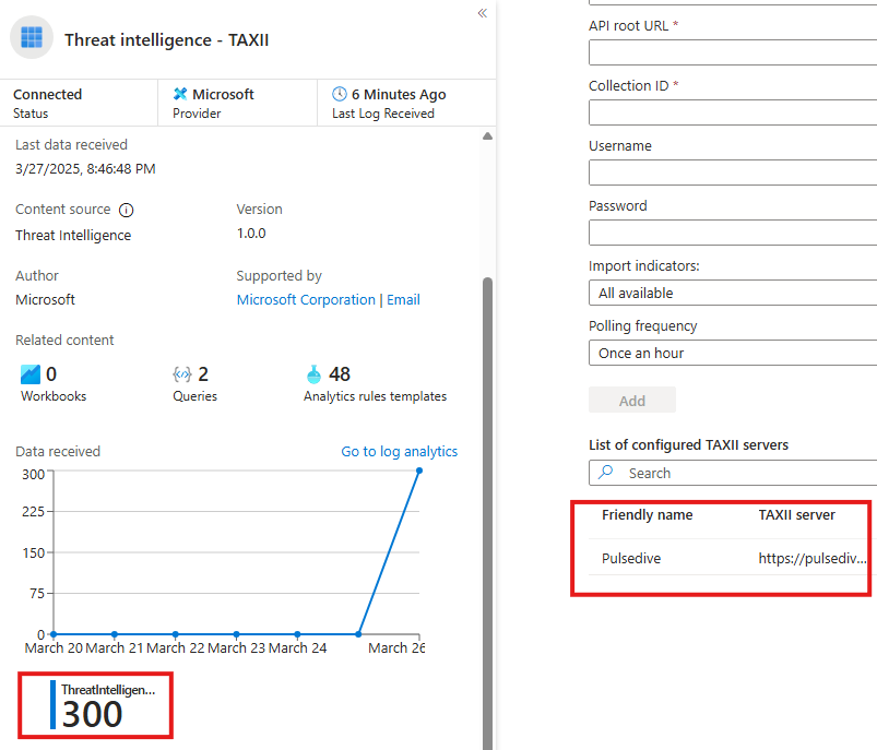 You can simulate threat intelligence ingestion using sources like Pulsedive by installing the relevant content solution from the Content Hub.
