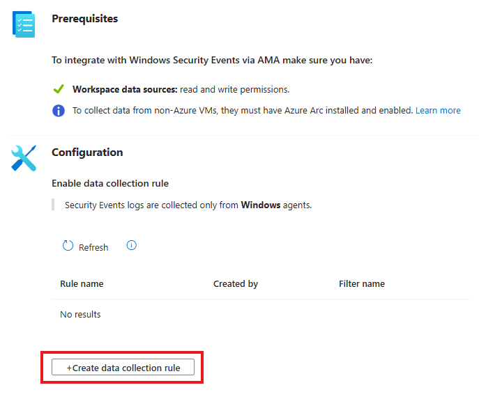 - Go to the connector page and create a Data Collection Rule (DCR).