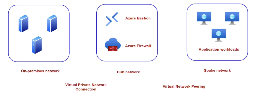 ➡️ Traffic from on-premises first enters the hub network, which then routes it to the appropriate spoke network or resource.