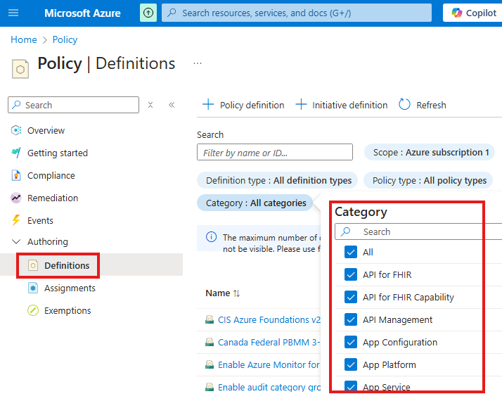 We can define policies here and if any resources are not compliant with the policies, it will show not compliant.