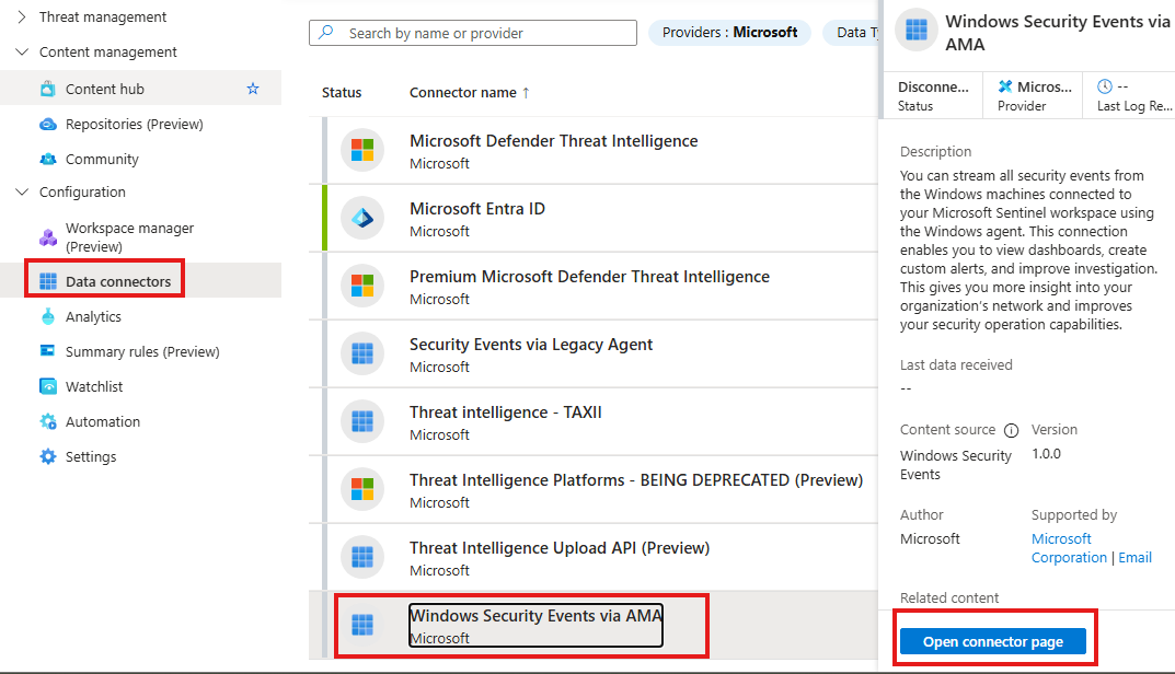 - Once configured, check Sentinel > Logs > SecurityEvent table to confirm data is flowing.