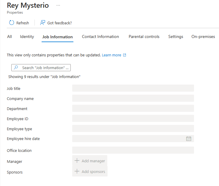 Synced users properties will not be editable form cloud portals. We have to edit it from on-premise AD itself.
