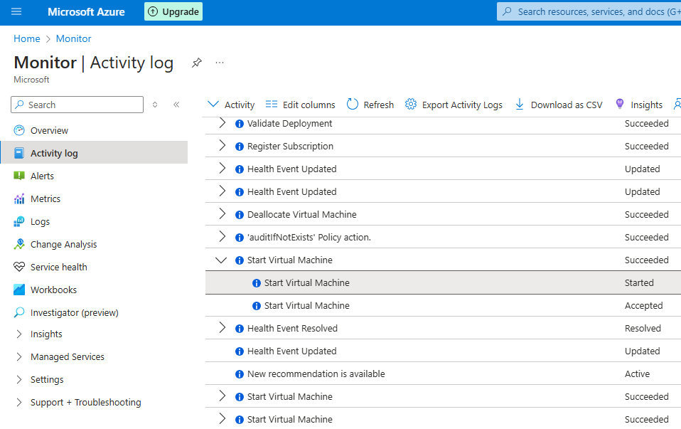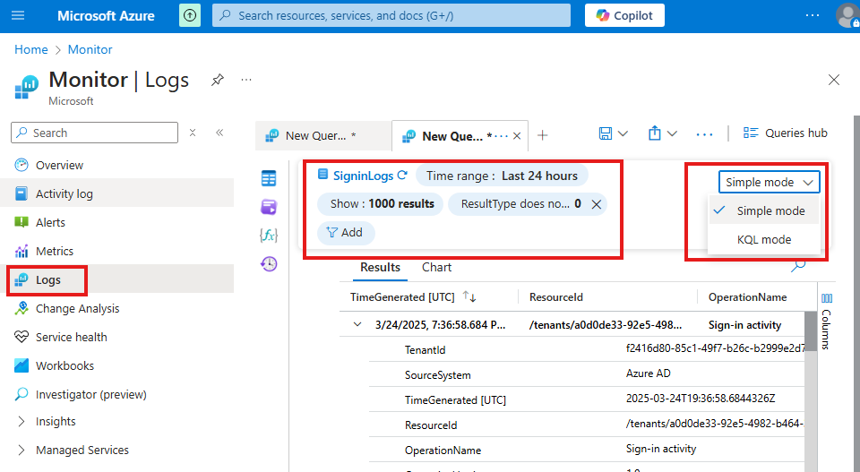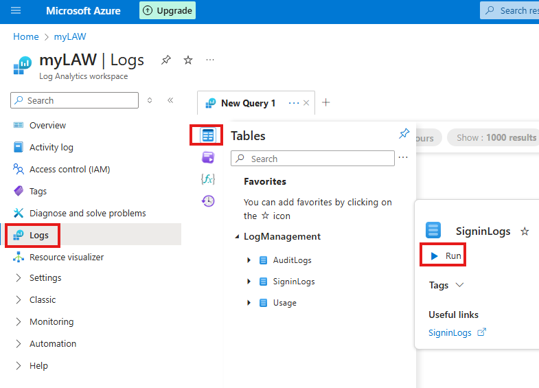 After some time we can go to Log Analytics Workspace resource we created and run queries to view the logs: