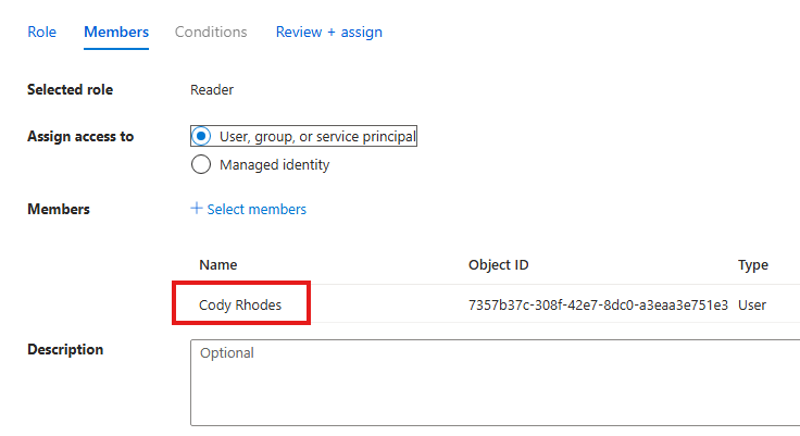 In the assignment tab, select user or group(recommended) to assign the role to: