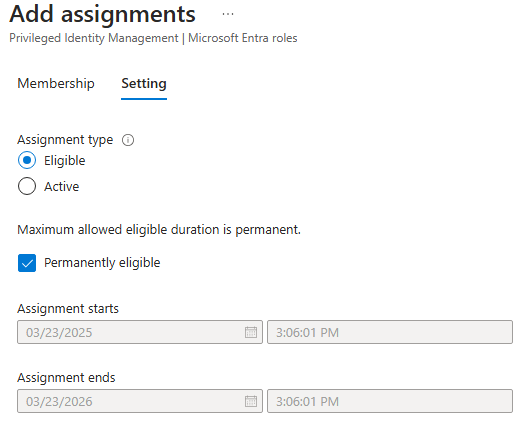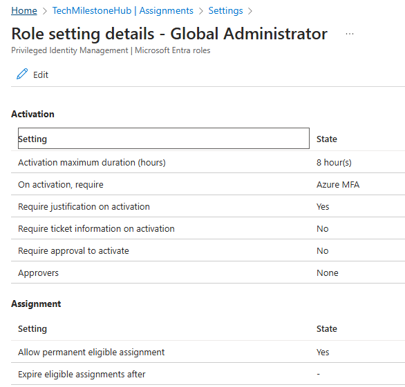 Here we can set PIM role settings like how long role should be active, who need to review etc.