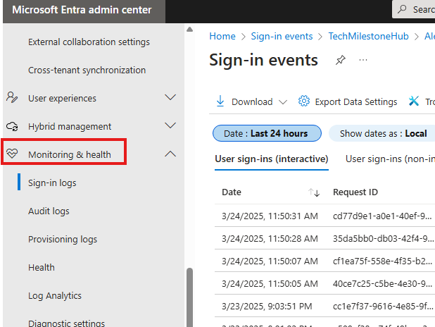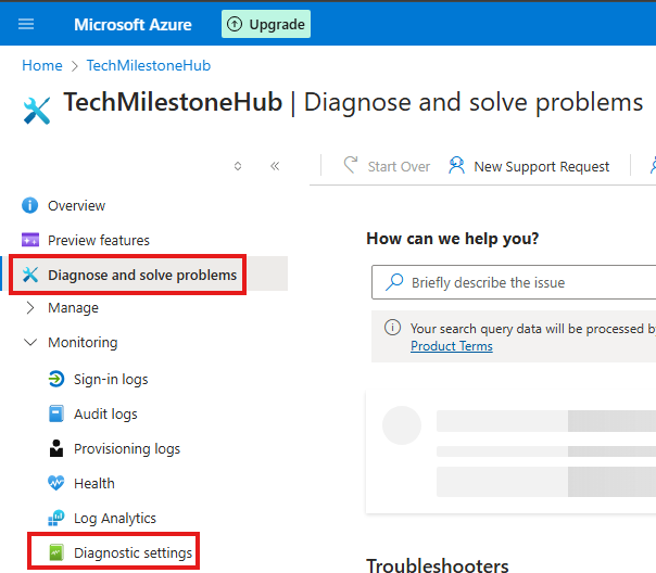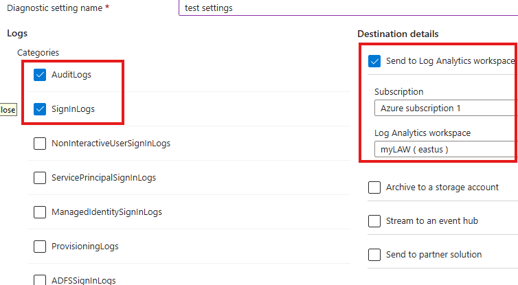 Azure portal > Entra ID > Diagnose and solve problems > Diagnostic settings > Add Diagnostic Settings