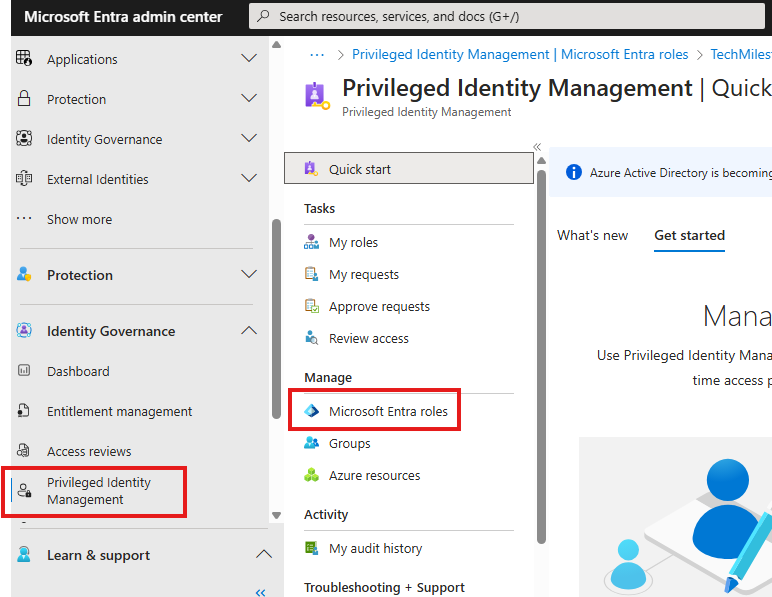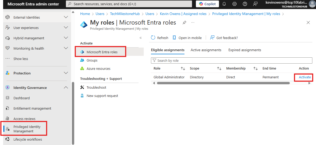 Go to Privileged Identity Management > Microsoft Entra Roles > My Roles