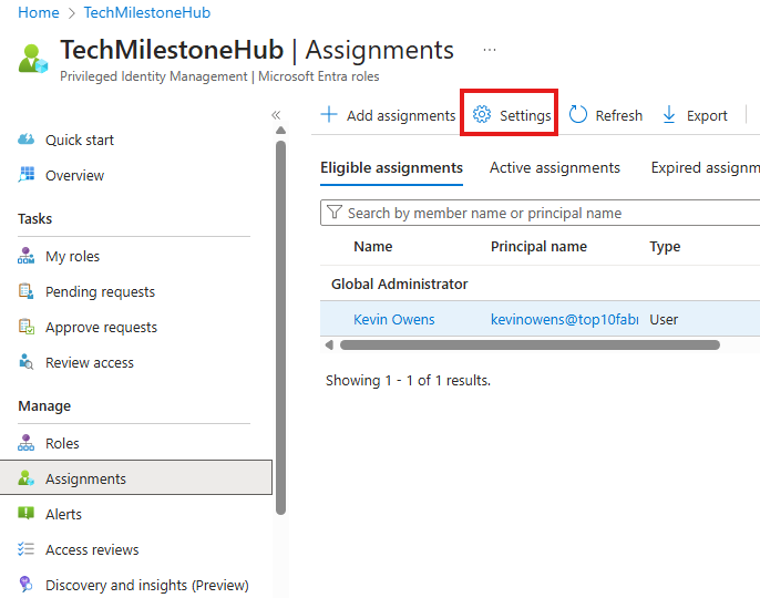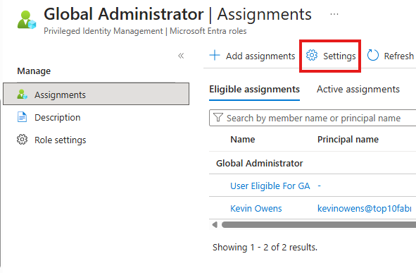 Global admins can view PIM settings and can view who all are eligible for what all roles.