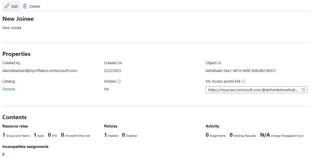 We created an access package called New Joinee. Any one in the All Company group can request this package. Once the get the package, they will have access to the resources defined.