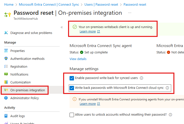 For detailed steps: 11 – Self-Service Password Reset – TechMilestoneHub