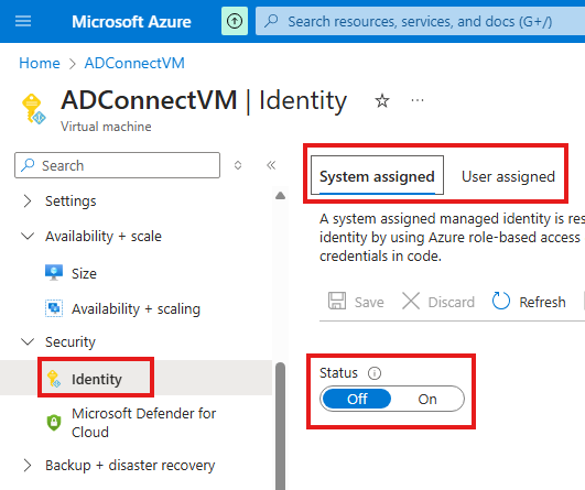 To enable a managed identity of VM, go to : Identity blade (security) of VM