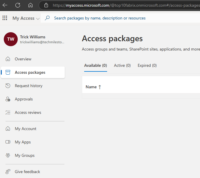 As new user(who is eligible to request the package), sign in to : myaccess.microsoft.com(Access portal)