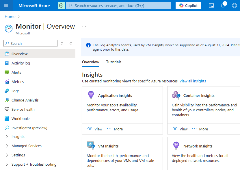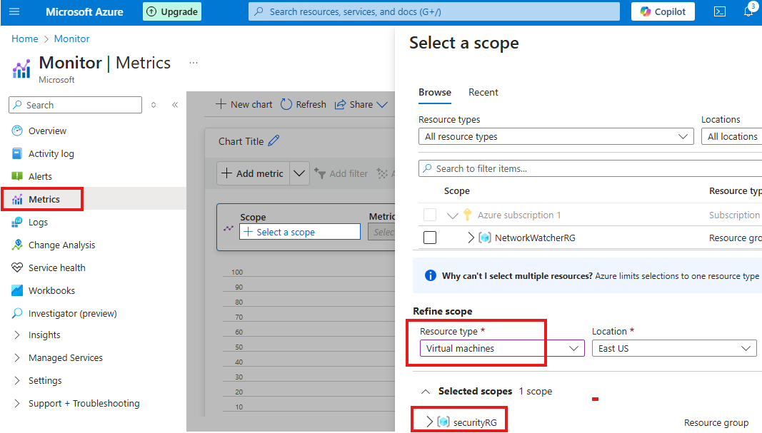 Here we can see some metrics related to azure resources, like CPU usage of VMs etc.