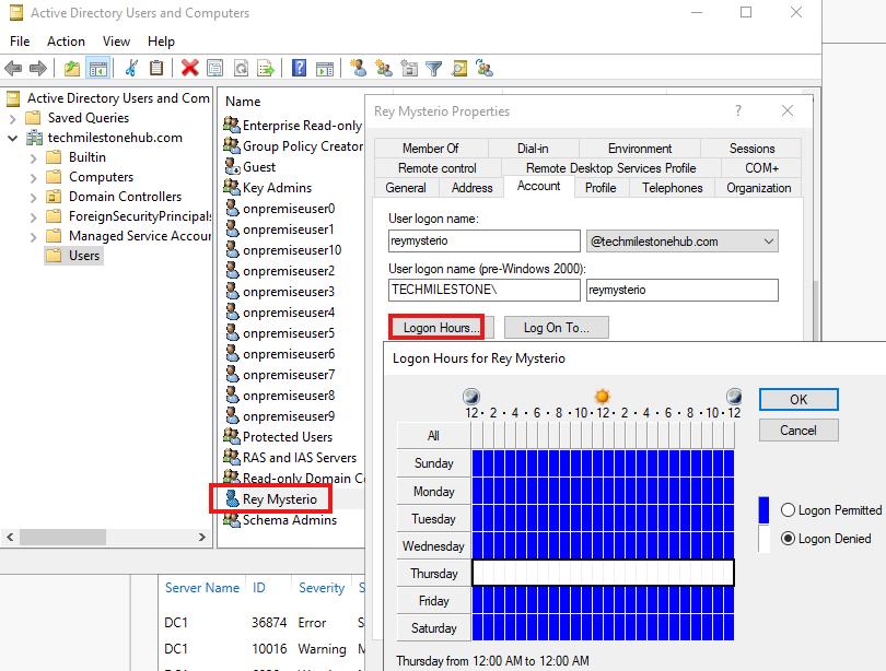 Here we are denying logon for today from on-premise AD, we cannot do this from Azure AD.