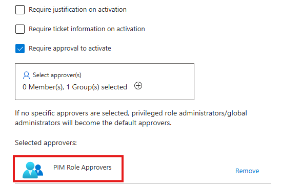 Now, even for user eligible for this role, need approval from users in group called: PIM Role Approvers