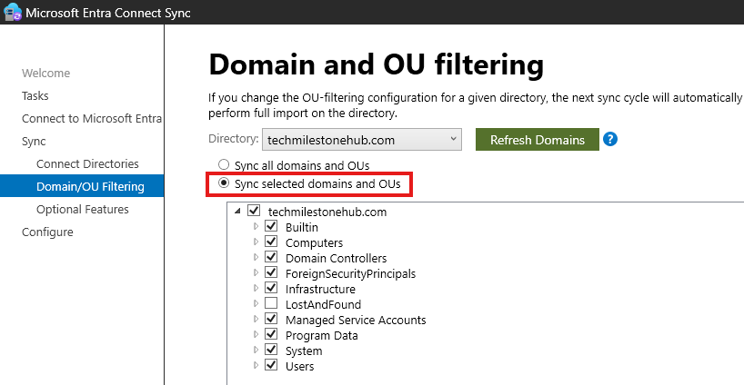 All OUs in the on-premise will appear here. We can select only the OU we wan to sync.