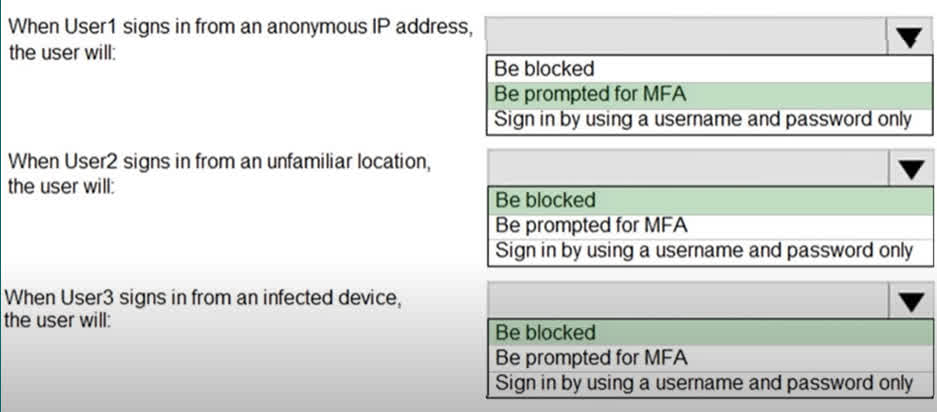 Question#QUE1293: You have an Azure subscription named Sub 1 that is associated to an Azure Active Directory (Microsoft Entra ID) tenant named contoso.com. The tenant contains the users shown in the following table: Each user is assigned a Microsoft Entra ID Premium P2 license. You plan to onboard and configure Microsoft Entra ID Identity Protection. Which users can onboard Microsoft Entra ID Identity Protection, remediate users, and configure policies? To answer, select the appropriate options in the answer area.